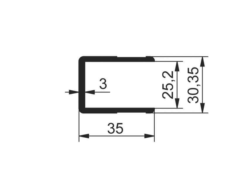 Einfassprofil U 35x25mm, eloxiert, pro lfm
